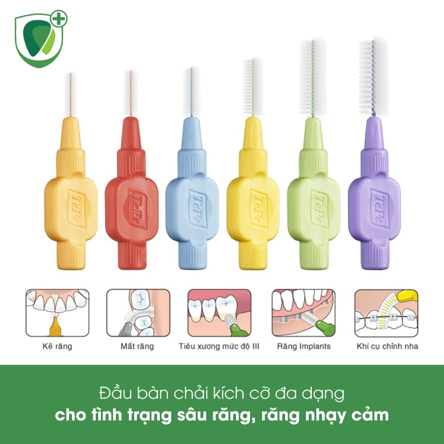 Bàn chải kẽ răng siêu mềm Tepe IDB 0.7mm vàng X-soft Yellow có đa dạng kích thước