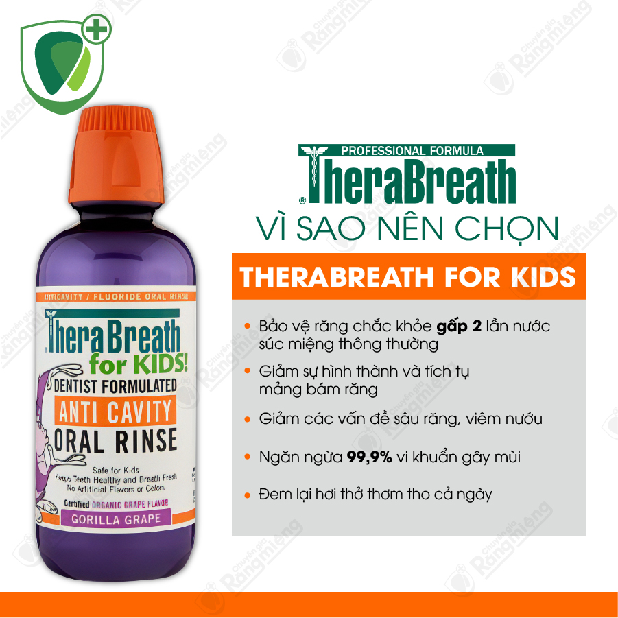 Nước súc miệng TheraBreath for Kids! thích hợp cho các bạn nhỏ thường hay có thói quen thích ăn đồ ngọt, lại sợ hay lười đánh răng làm cho răng dễ bị sâu.